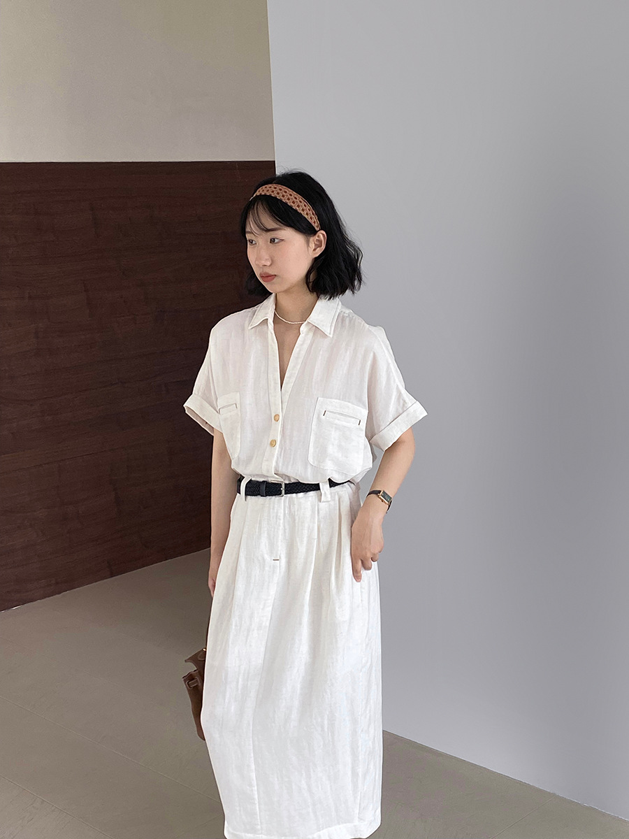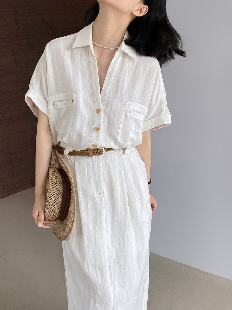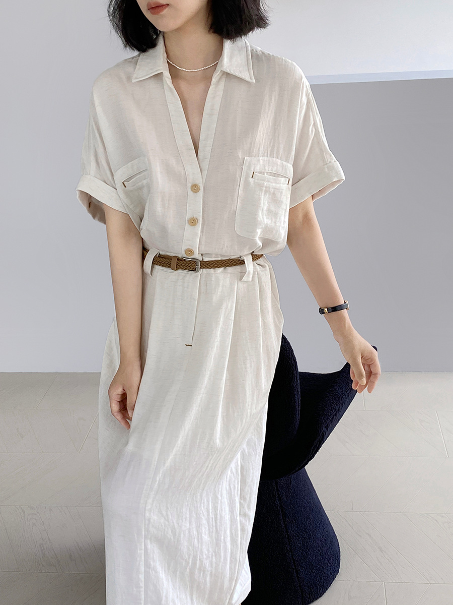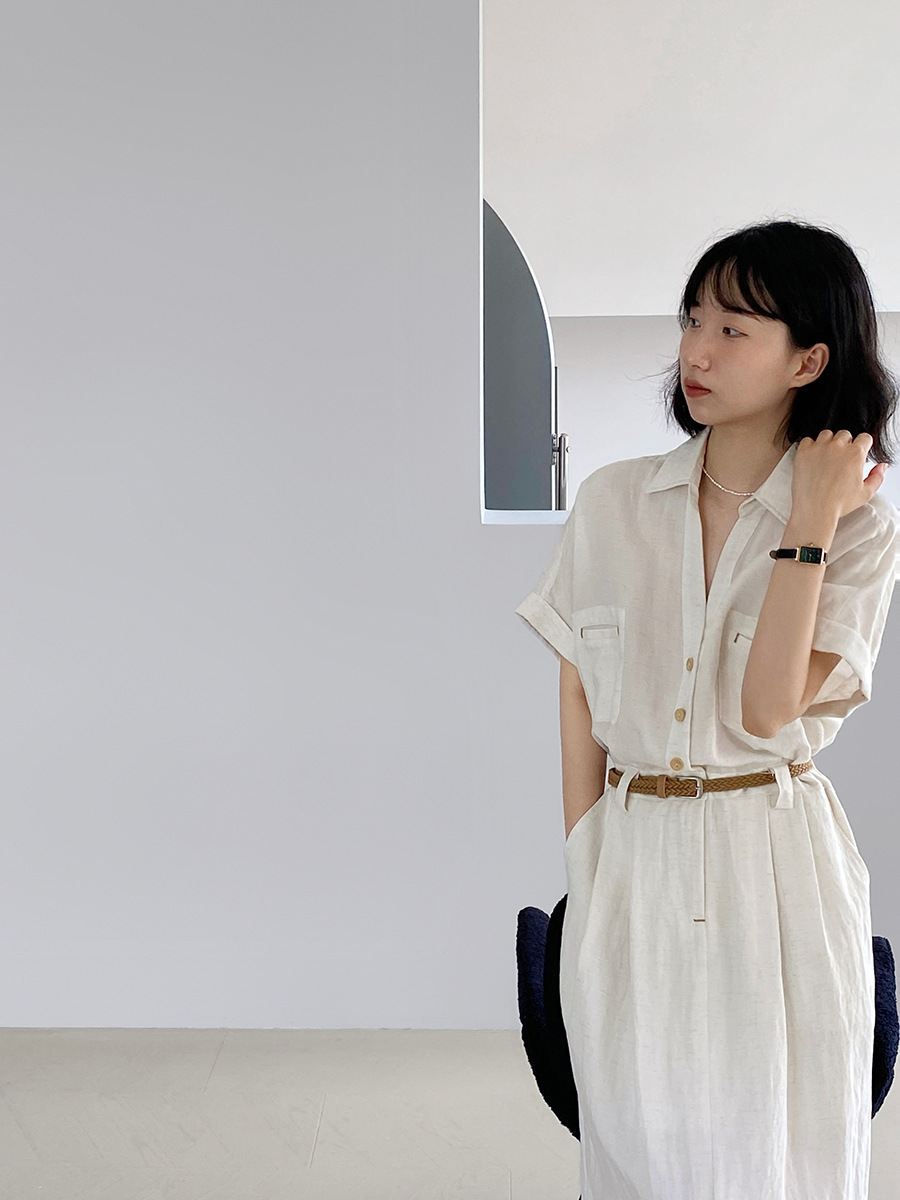 涼しげなリネン素材を使用し、さらりとした着心地が魅力的です。