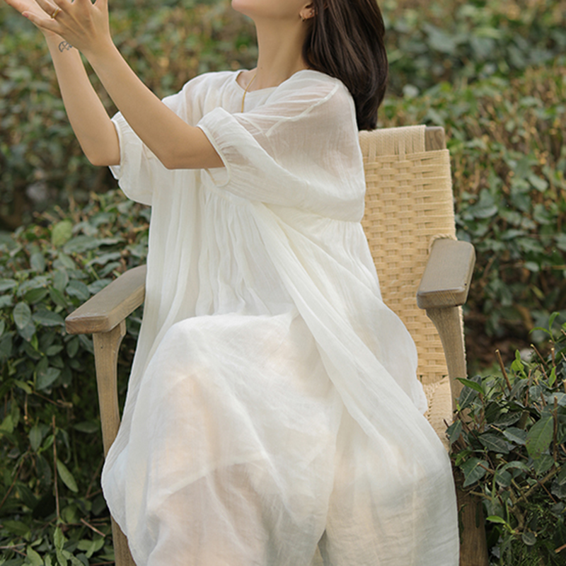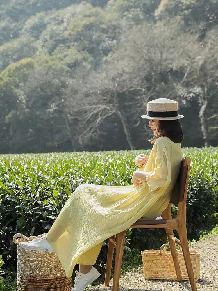 きれいめカジュアルなスタイルにぴったりで、休日のお出かけやリゾートシーンにもおすすめの一着です。