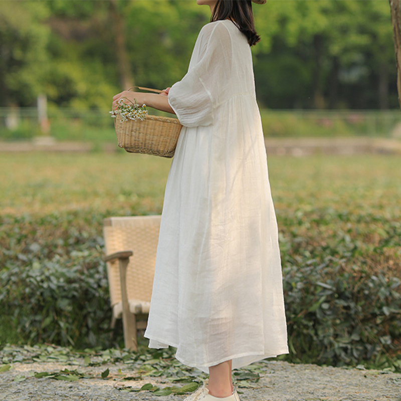 ふんわりと優しい印象を与えるギャザーデザインが特徴のマキシ丈ワンピースです。