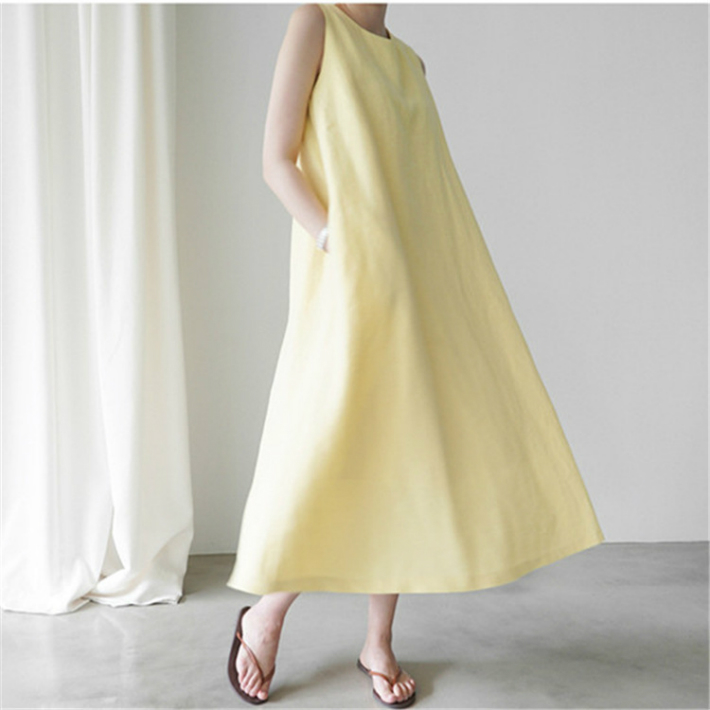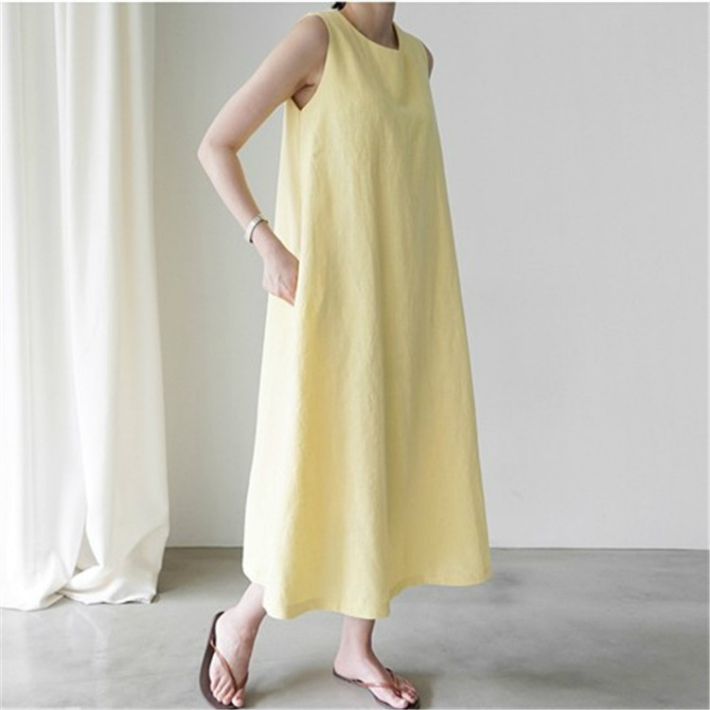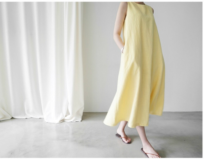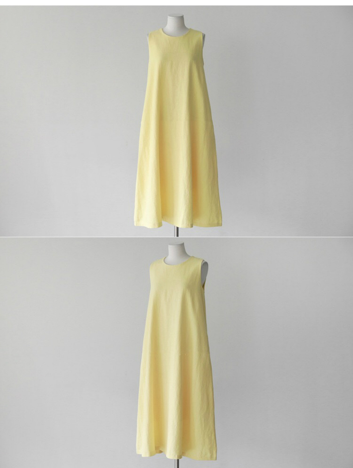 涼しげなイエローカラーが美しいノースリーブワンピース。