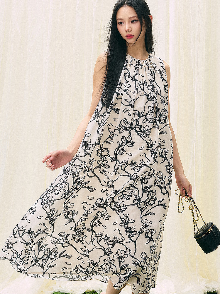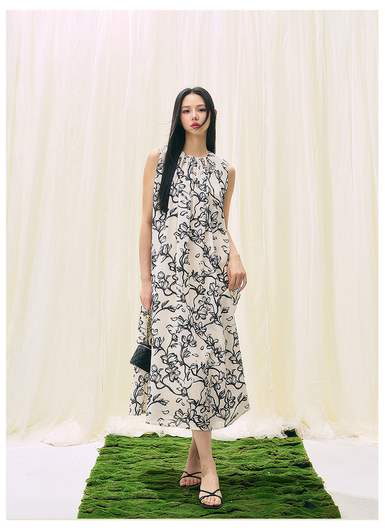 ノースリーブデザインで涼しげな印象ながら、ロング丈で大人っぽくきれいめカジュアルな着こなしが叶います。