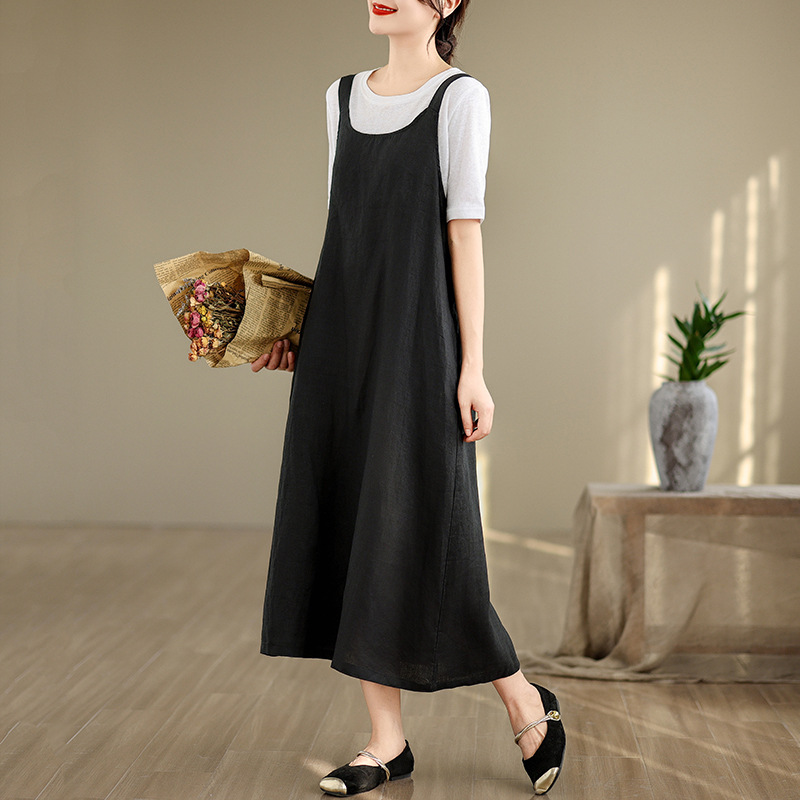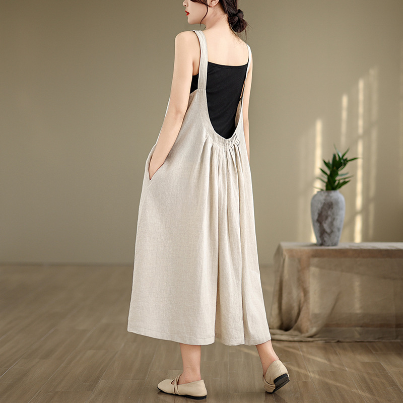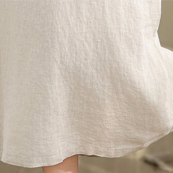 軽やかなリネン混素材で仕立てた、ゆったりシルエットのワンピースです。