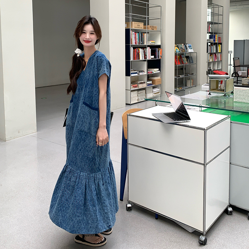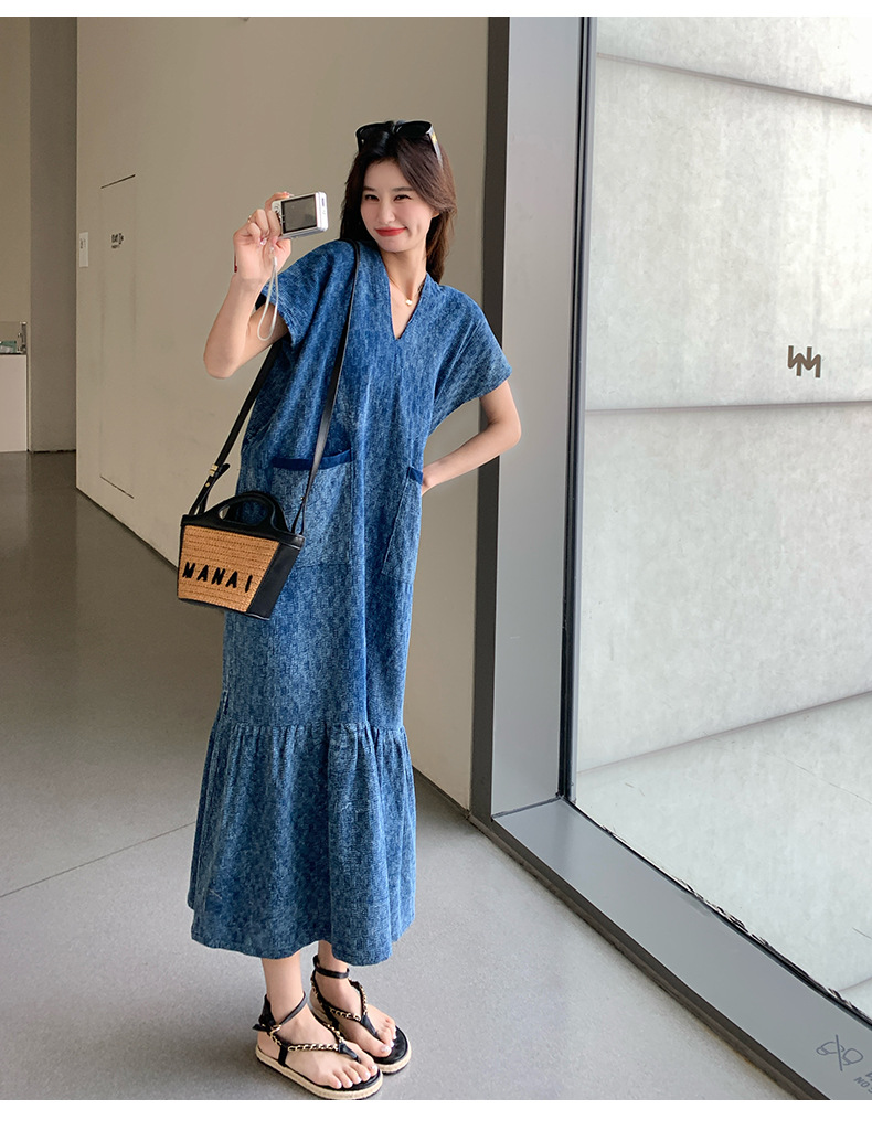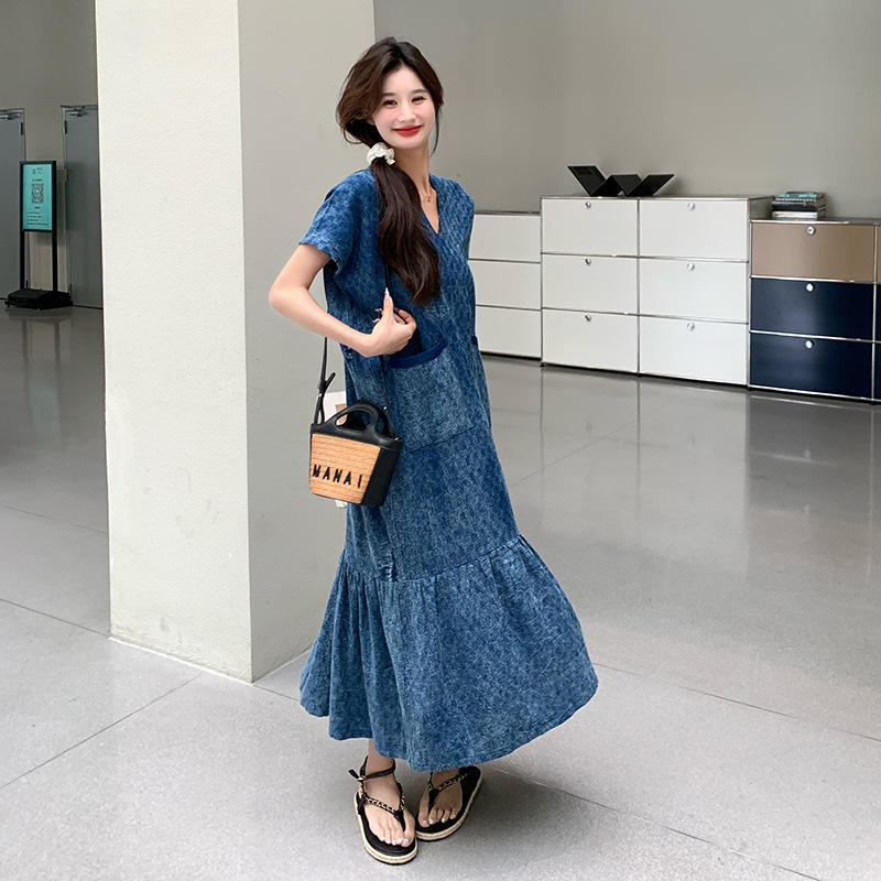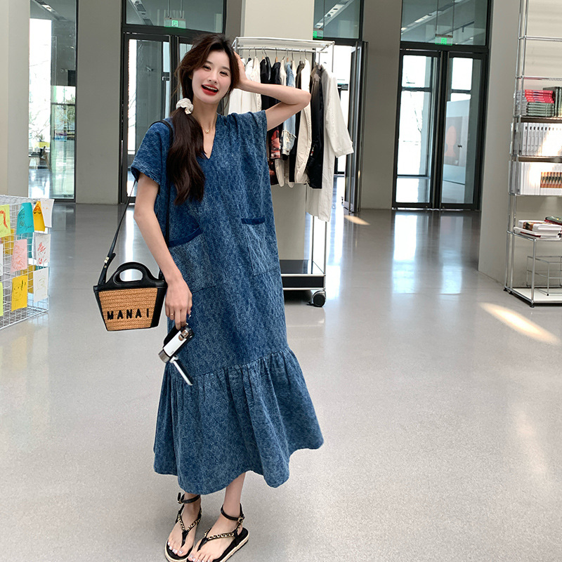 きれいめカジュアルに着こなせるデニム素材のワンピースです。