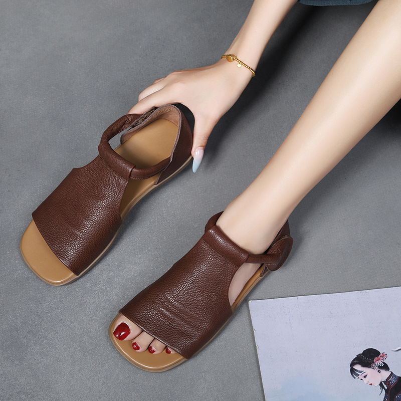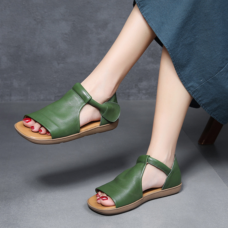 足を優しく包み込むワイドなデザインと、かかとを支えるストラップが特徴的で、歩きやすさと安定感を両立しました。