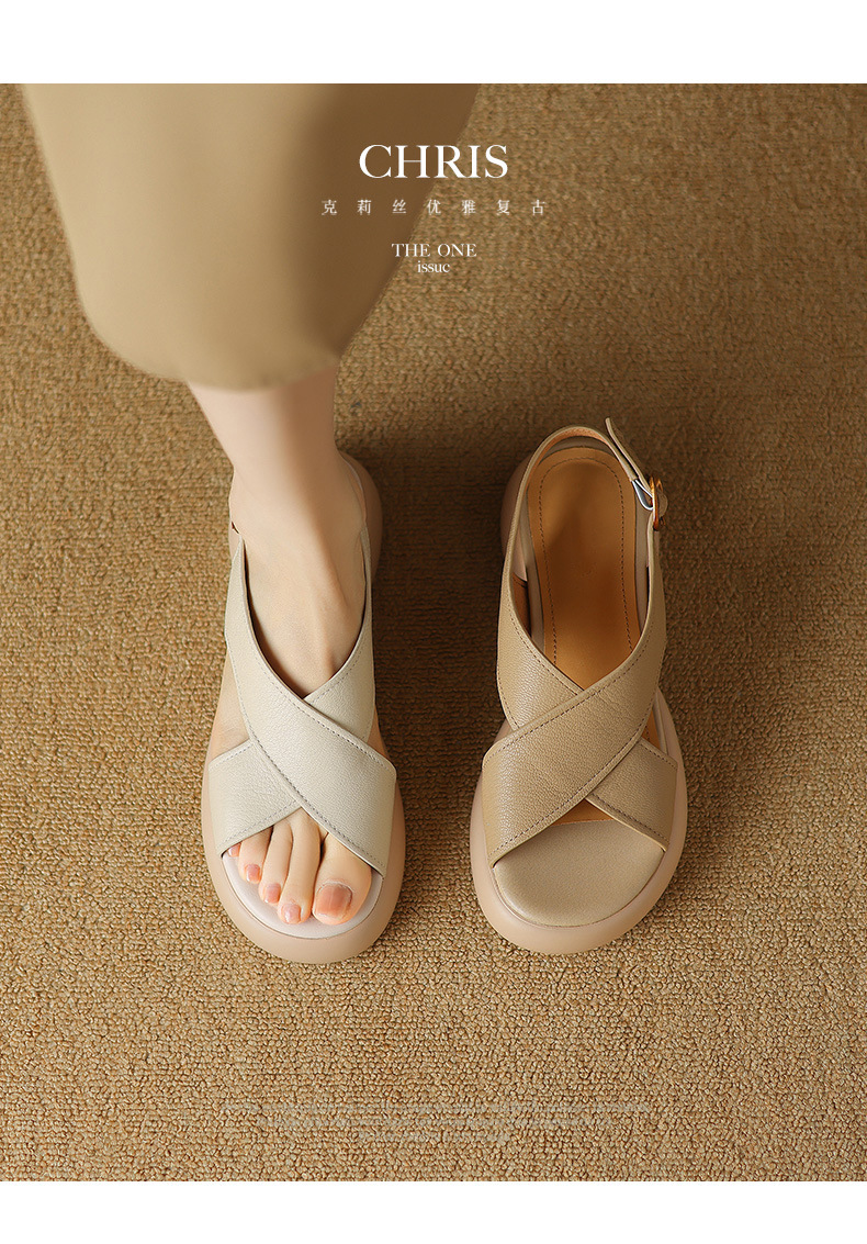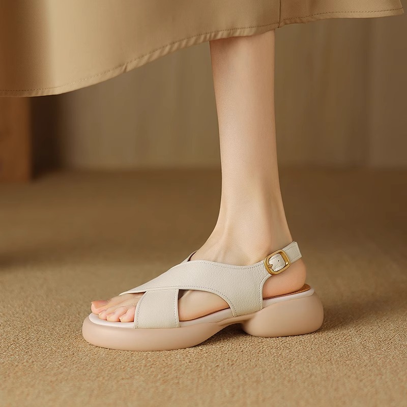 交差したストラップが足元を美しく演出し、厚底ソールが程よいボリューム感と快適な履き心地を実現します。