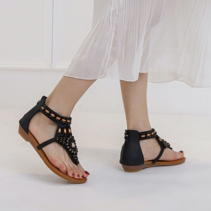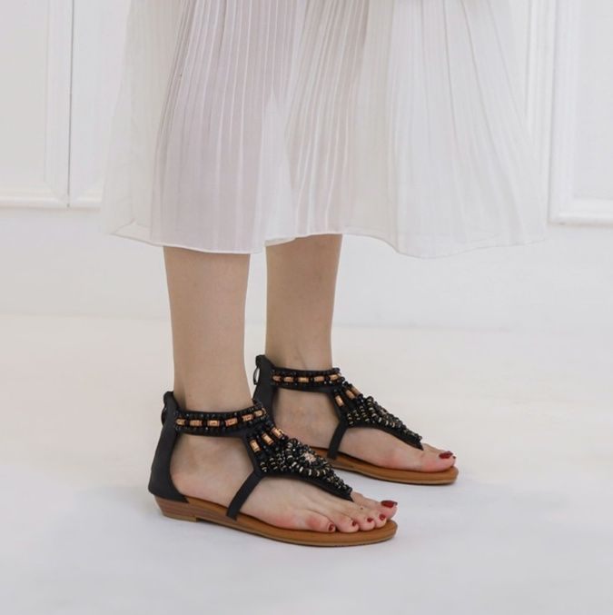 華やかなビジュー装飾が足元を彩るトングサンダルです。